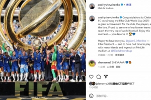 體育資訊7月15日訊 舍甫琴科更新社媒動態(tài),祝賀老東家切爾西問鼎世俱杯。